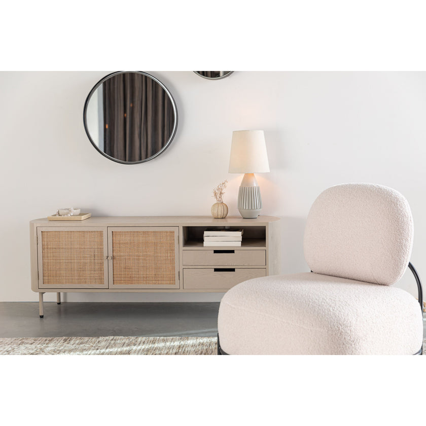 De sfeervolle Amaya dressoir past binnen de Japandi stijl en past in ieder interieur. Amaya is gemaakt van hout en heeft twee gevlochten rattan deurtjes. De lichte kleuren en ronde vormen zorgen voor een rustige, serene uitstraling. Tip: Decoreer het open vak met mooie tafelboeken of tijdschriften.