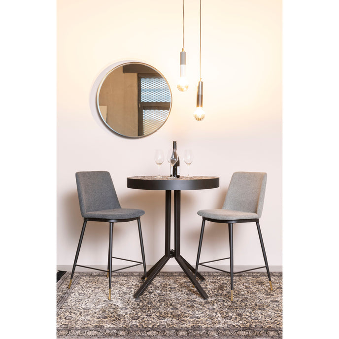 Het zijn die gouden sokjes die eetbarstoel Lionel direct zijn chique uitstraling geven. Deze hoge eetkamerstoel heeft een mooie hoge rug die net als de zitting met comfortabele vulling bekleed is en gestoffeerd. De zwart metalen poten zijn verder mat afgewerkt en lopen elegant, taps toe. Voor extra comfort is er een voetensteun. De Lionel stoel is er in veel verschillende kleuren en ook in verschillende hoogtes verkrijgbaar. Lionel is er namelijk ook als eetkamerstoel en barstoel.