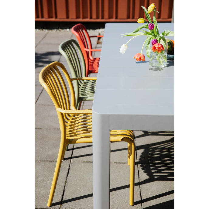 De Tuinstoel Mante voegt kleur en comfort toe aan uw buitenruimte. Verkrijgbaar met en zonder armleuning in drie vrolijke kleuren, is deze stoel perfect voor een gezellige zomerse sfeer aan uw tuintafel.