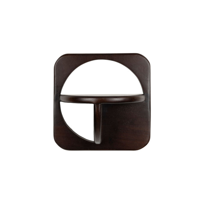 Wat meteen opvalt aan de Ollie wandplank is de unieke vorm. Door de vierkante achterzijde en cirkel in het midden, doet het design denken aan een klok. Daarbij is de bovenste helft van de cirkel naar beneden geklapt als plank om je mooiste spullen op tentoon te stellen. Bij de onderste helft is het linkerdeel uitgeklapt als ondersteuning. Het walnootkleurige acaciahout en de ronde afwerkingen van de hoeken en randen maken de look af.