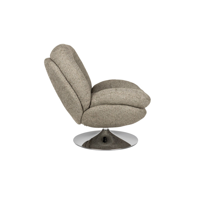 Dat de Romy fauteuil comfortabel zit, zie je al van ver. Je zakt heerlijk weg in het grote zitkussen met opstaande randen. Ook de rugleuning met opvallende naad, is rijkelijk gevoerd en voelt daardoor zowel stevig als zacht aan in je rug. De grof geweven stof geeft daarnaast een fijne uitstraling en vormt een mooi contrast met de chroom-look van de poot. Doordat de stoel draaibaar is, plaats je ‘m bovendien in iedere gewenste positie.