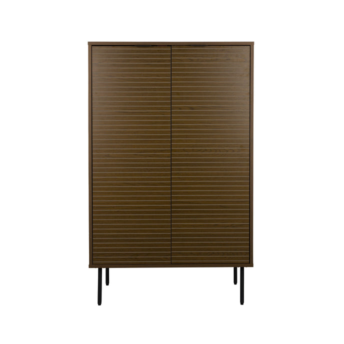 De hoge Flux kast van Zuiver combineert strak design met veel opbergruimte. Achter de elegante houten deuren met subtiel lijnenspel vind je vier planken, ideaal voor het opbergen van servies, glaswerk of je mooiste woonaccessoires. De warme afwerking in walnoot of gerookt eikenhout zorgt voor een luxe uitstraling, terwijl de slanke metalen poten de kast licht en elegant laten ogen. Deze hoge kast is een echte blikvanger én praktisch in gebruik.