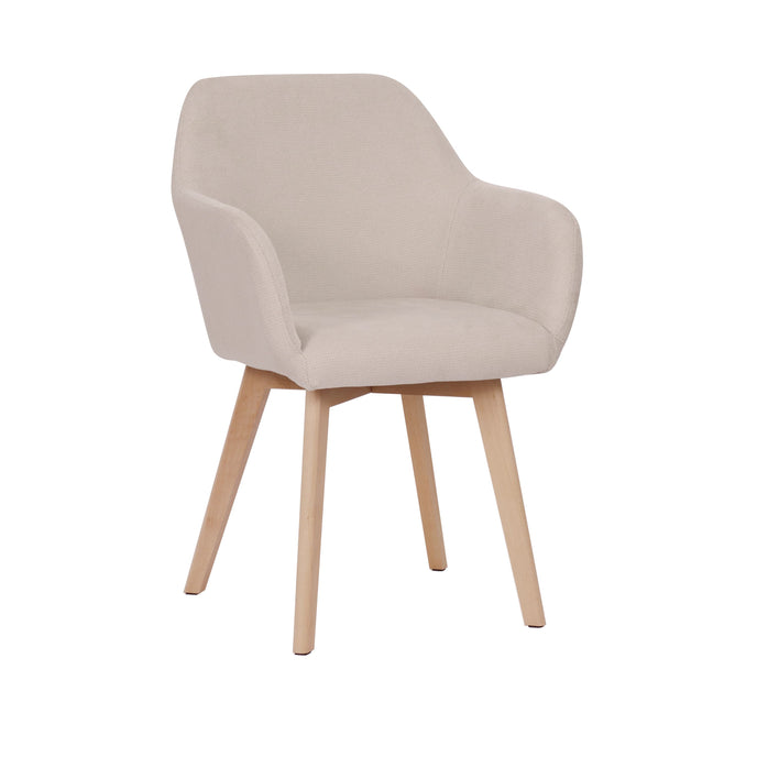 De Yala eetkamerstoel straalt rust en elegantie uit dankzij zijn zachte vormen en tijdloze ontwerp. Verkrijgbaar in drie serene kleuren die moeiteloos warmte en harmonie in je interieur brengen. De comfortabele zitting met armleuningen nodigt uit om urenlang te tafelen of te ontspannen, terwijl het stevige houten onderstel voor een natuurlijke en warme uitstraling zorgt.